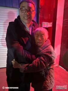 Пастор Чжан Шаоцзе (张少杰牧师) обнимает свою 84-летнюю мать после отбытия 12-летнего тюремного срока и возвращения домой 16 ноября.