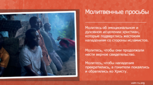 Организация «Голос мучеников Корея» подготовила слайды PowerPoint, которые помогут вашей церкви, малой группе и семье молиться за преследуемых христиан. Загрузите их на сайтах www.vomru.org/idop и www.vomua.org/idop.