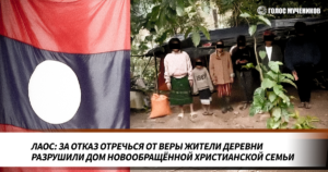 Организация «Голос мучеников» подтвердила, что 7 января 2026 года семья из шести человек была выселена из деревни на юге Лаоса, а их дом разрушен после того, как члены семьи отказались отречься от своей новой веры в Иисуса.
