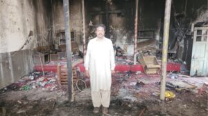 Пакистанский христианин стоит на руинах одной из церквей, разрушенных во время исламских беспорядков в Джаранвале.
